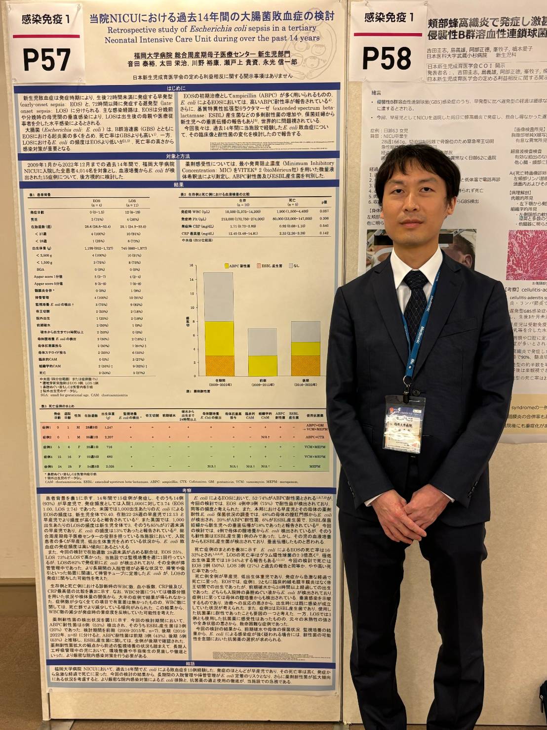 音田 泰裕 先生が演題名「当院NICUにおける過去14年間の大腸菌敗血症の検討」